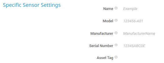 i_round_blueThe information in the Specific Sensor Settings reflects the status of the system at the time of sensor creation. If any setting changes after creation, the Specific Sensor Settings do not reflect the change. Add the sensor anew to update the displayed settings.